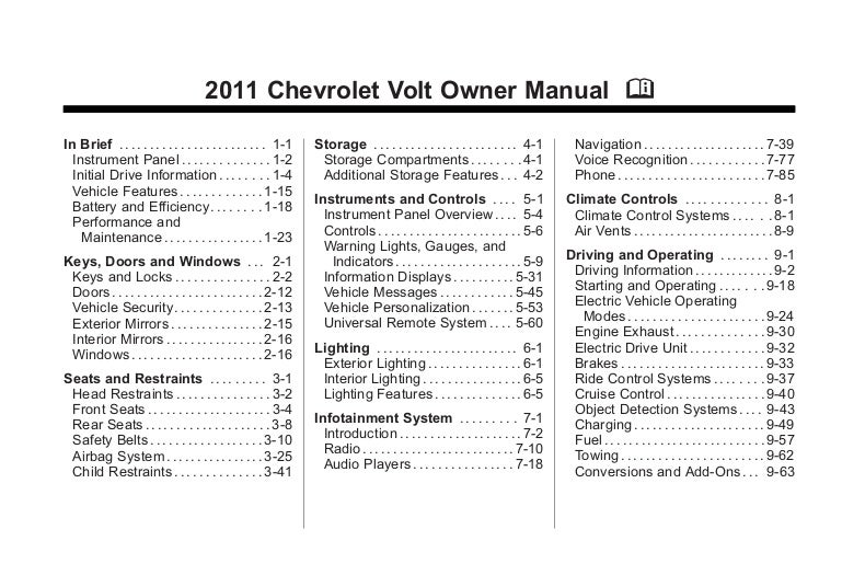 Bob Hook Chevrolet 2011 Chevy Volt Owners Manual